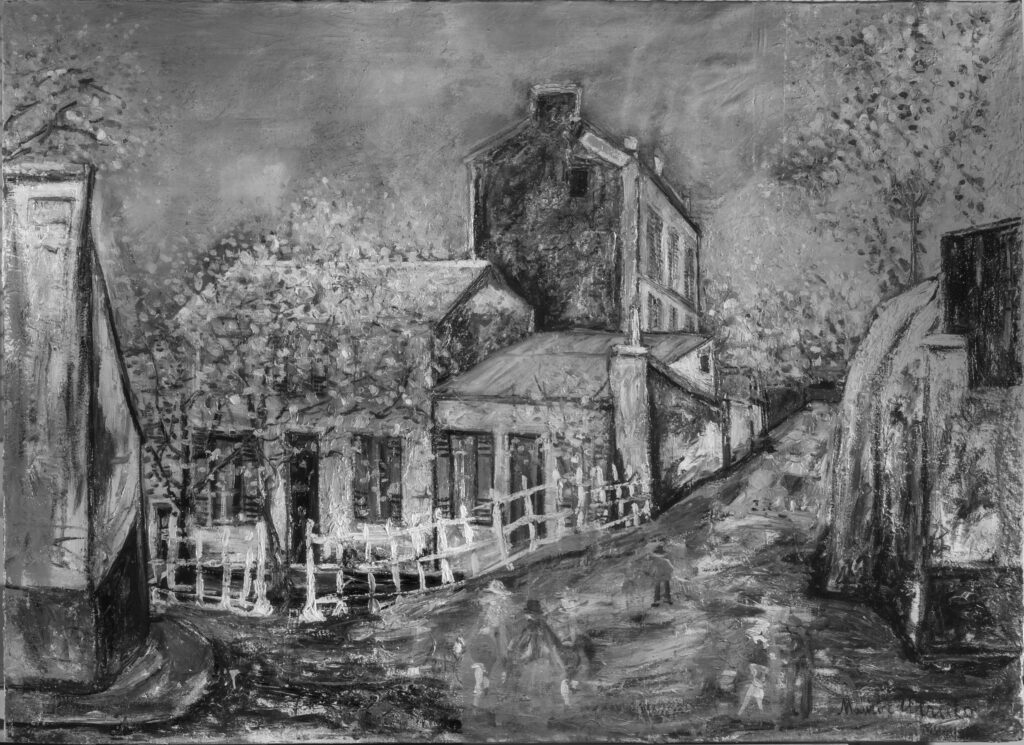 Abb.4. X-Ray Röntgenuntersuchung-Tiefenuntersuchung vom Vorzustand des Maurice Utrillo. In Zusammenarbeit, mit der Hochschule der Bildenden Künste, der abk Stuttgart, Herrn Dipl. Restaurator Peter Vogel, Prof. Dipl. Restauratorin Frau Andrea Funke, ausgeführt wurde. Vielen Dank, für die Aufnahmen in der abk Stuttgart der Hochschule.